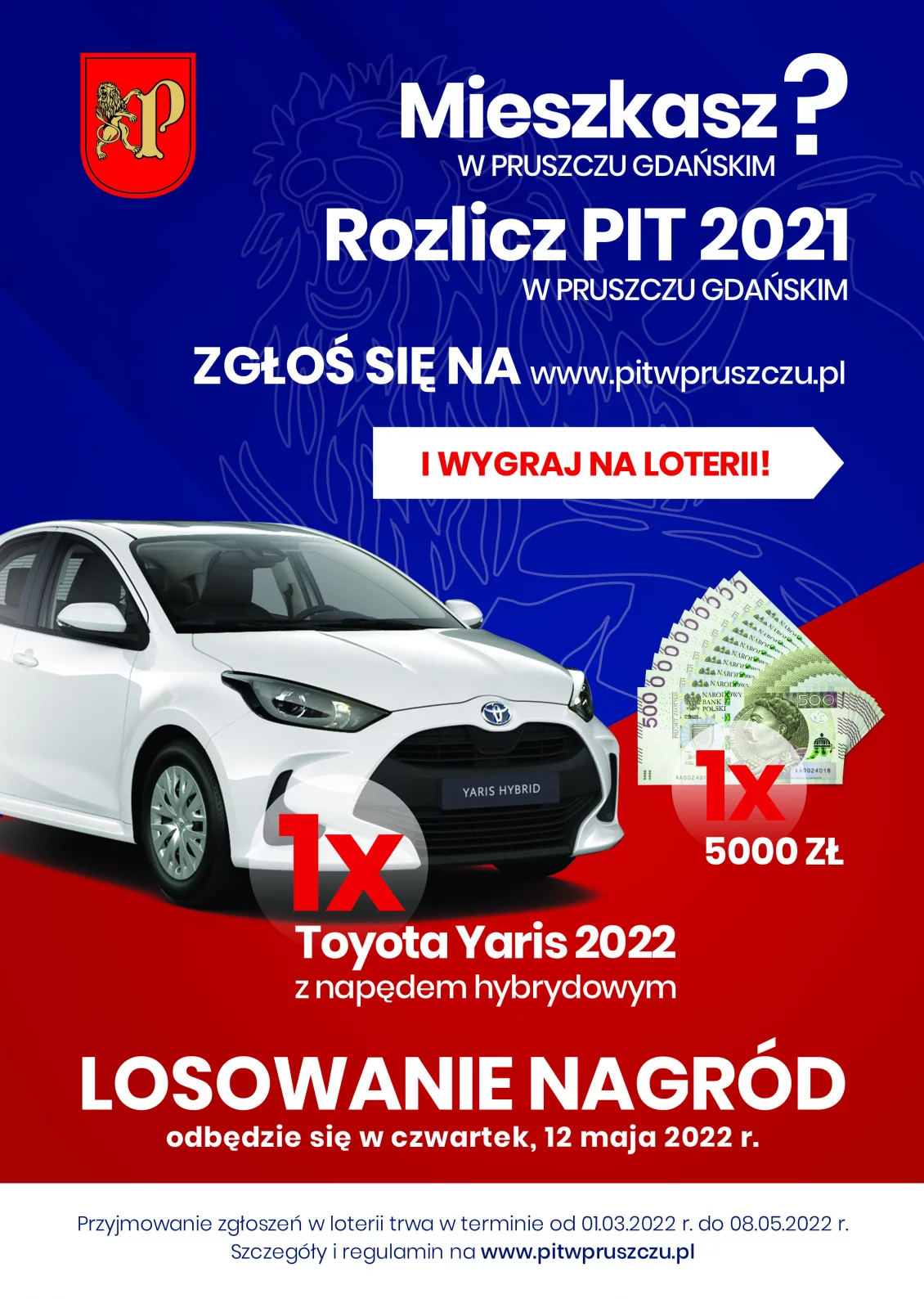 - w terminie od dnia 01.03.2022 roku do dnia 08.05.2022 roku dokonaj prawidłowego zgłoszenia w Loterii na stronie internetowej www.pitwpruszczu.pl